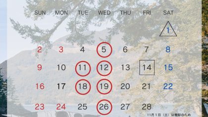 【11月定休日のご案内】11月の定休日をご案内いたします。定休日:毎週水曜日、第2、第3火曜日また誠に勝手ではございますが、11月1日(土)は棚卸、11月14日(金)は社内研修のため下記の通り、営業時間を変更しております。11月1日(土)13時〜18時30分11月14日(金)10時〜...