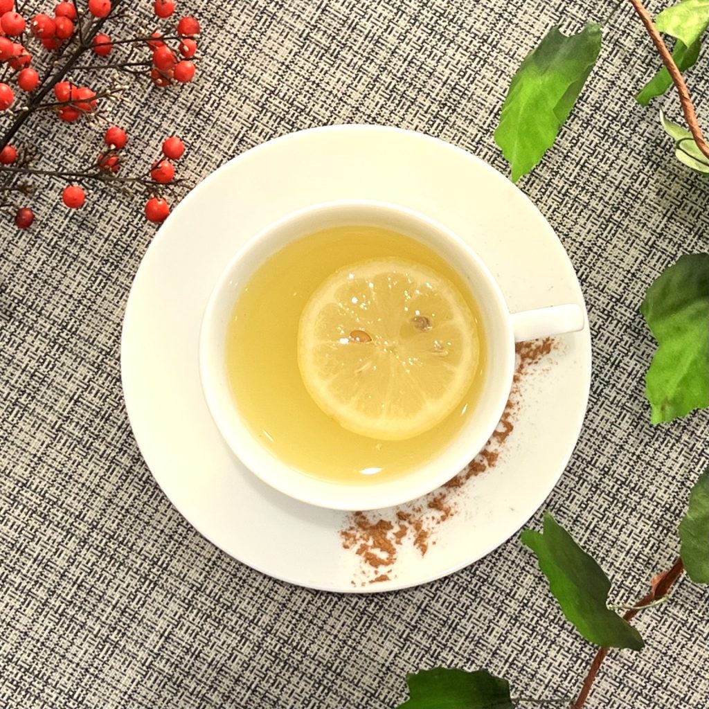 リンゴジュースにシナモンとレモンを加えた、
